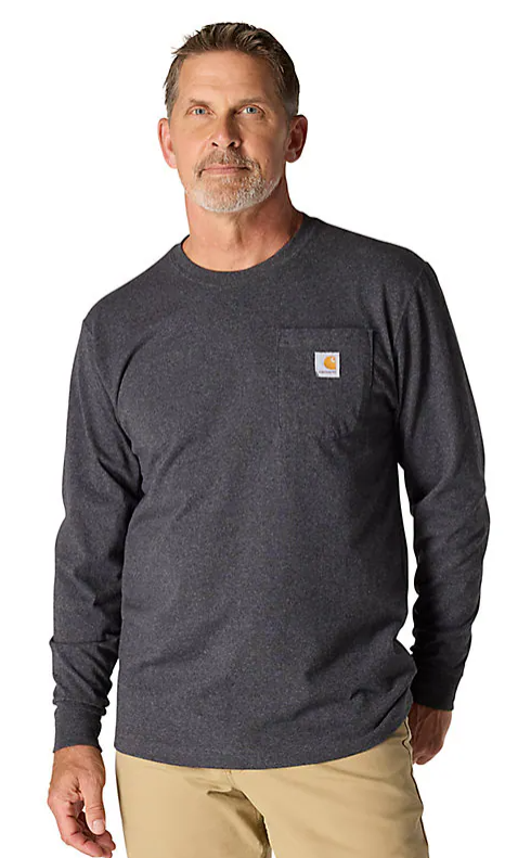 Carbon Heather Loose Fit Heavyweight Long-Sleeve Pocket T-Shirt